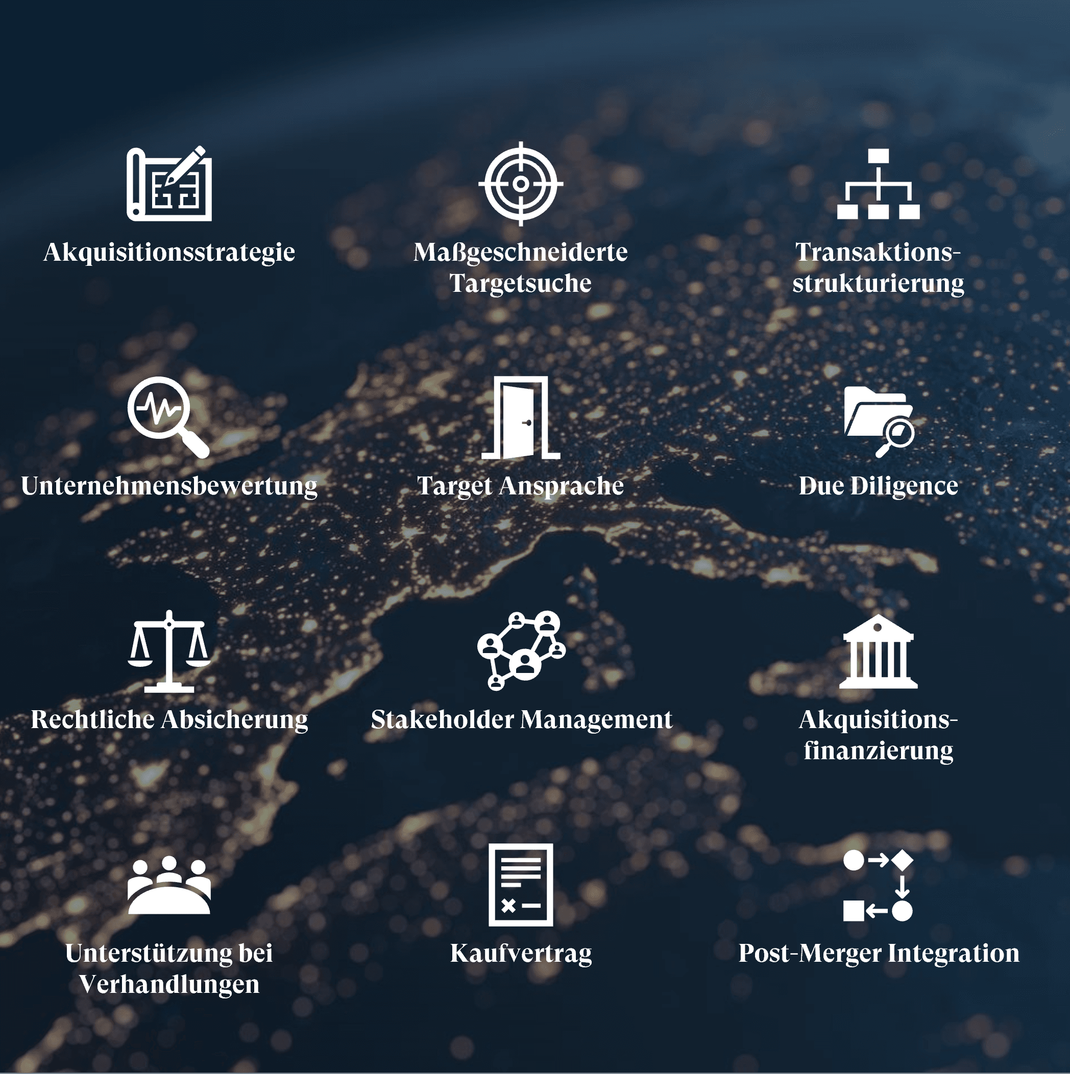 Wir liefern klare Werte in allen Transaktionsphasen, von der frühen Planung über die Durchführung und Due Diligence bis hin zur Rechtsberatung und Post-Merger-Integration. Damit befähigen wir unsere internationalen Mandanten, sich erfolgreich in den deutschsprachigen Märkten und ihren Nachbarländern zu bewegen.